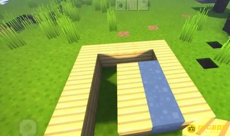5、接着用木板围起整个商店做墙,留两个口做窗户和门。