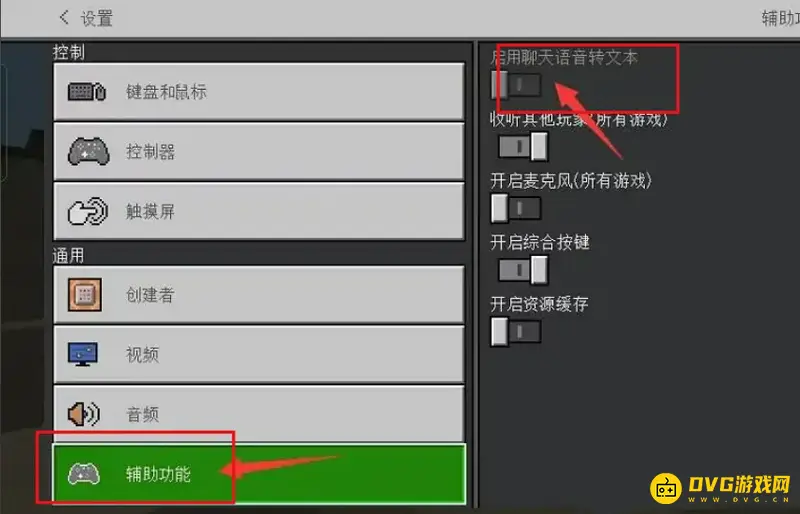 3、最后,点击辅助功能,然后点击启用聊天语音转文本功能,即可发送消息。