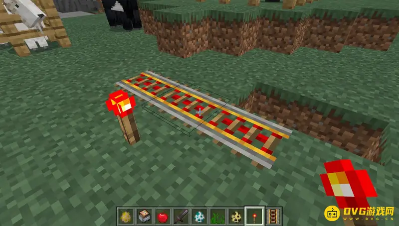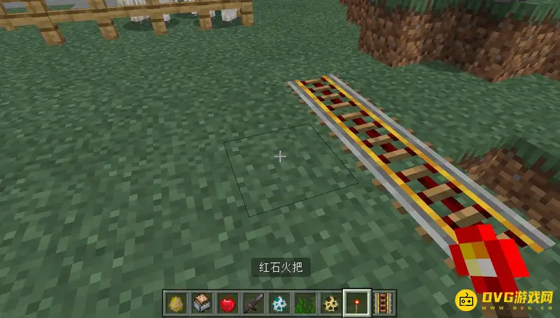 1,例如我们可以在动力铁轨旁边放红石火把,在旁边一格的位置即可。
