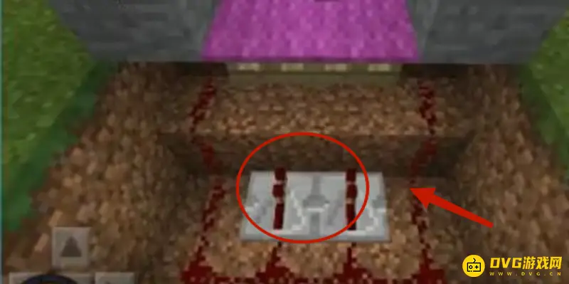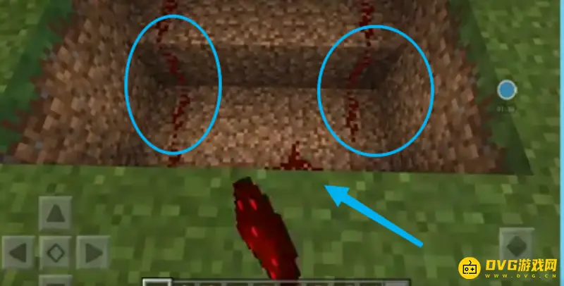 3、在坑的两边用红石铺上,在最外边连接上,在两排红石的中间放上两个红石中继器,方向要对着门。