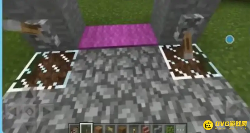 4、在坑里的台阶上,门框的中间放上2个栅栏门,哪种栅栏门都可以,按住shift键,鼠标对着栅栏门,右键放上地毯。