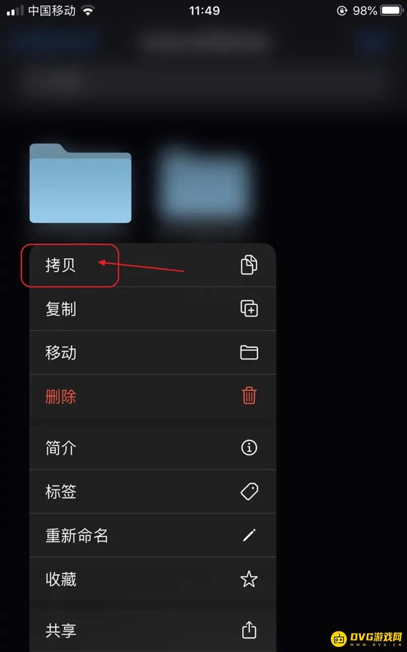 将备份的存档右键点击【拷贝】发送给另一个手机即可。
