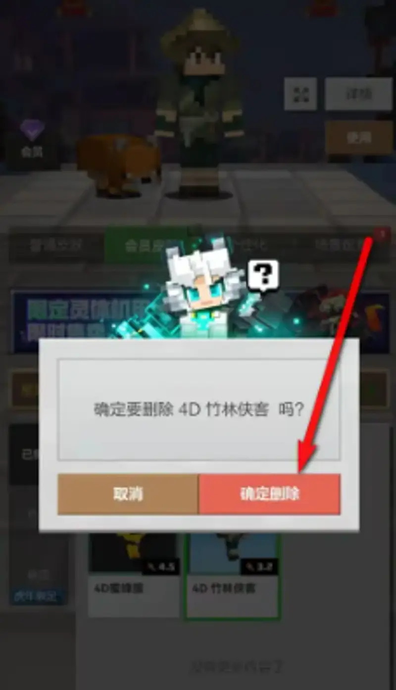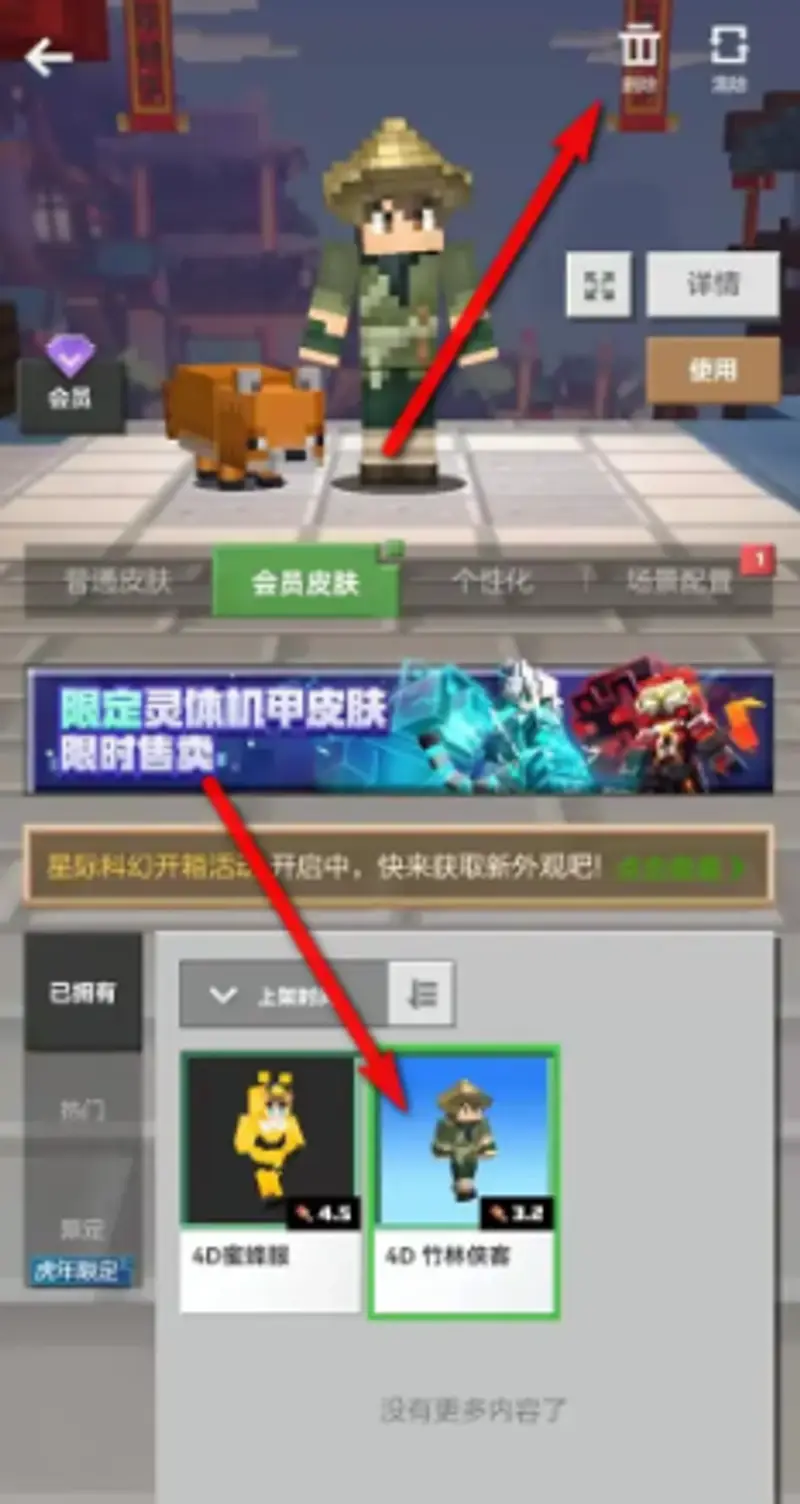 二、找到并点击选中要删除的皮肤,点击右上角的“删除”,如下图所示;