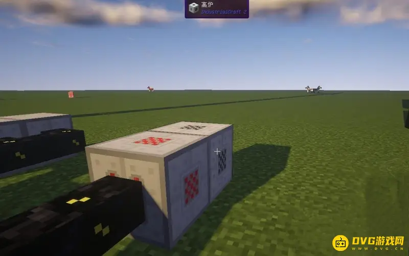 5、开启后,将空气通用流体单元和铁锭放入高炉