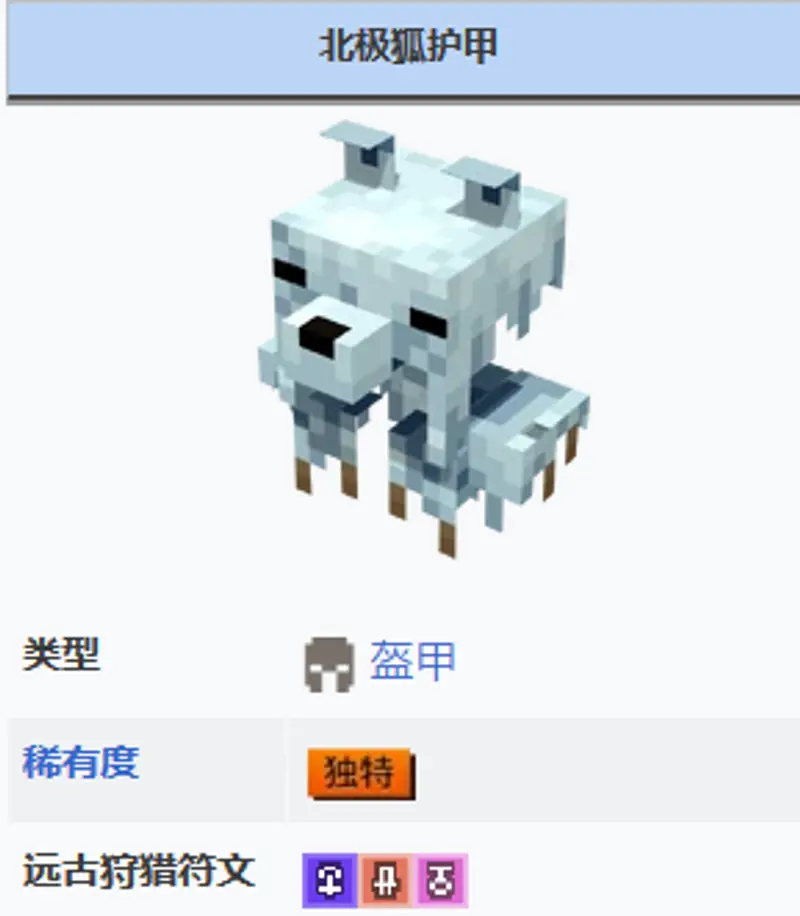 3.北极狐护甲(Arctic Fox Armor),是狼甲的特殊活动变种。三个效果:30%几率抵消伤害, 20%武器伤害提升,可将治疗药水用于附近队友。