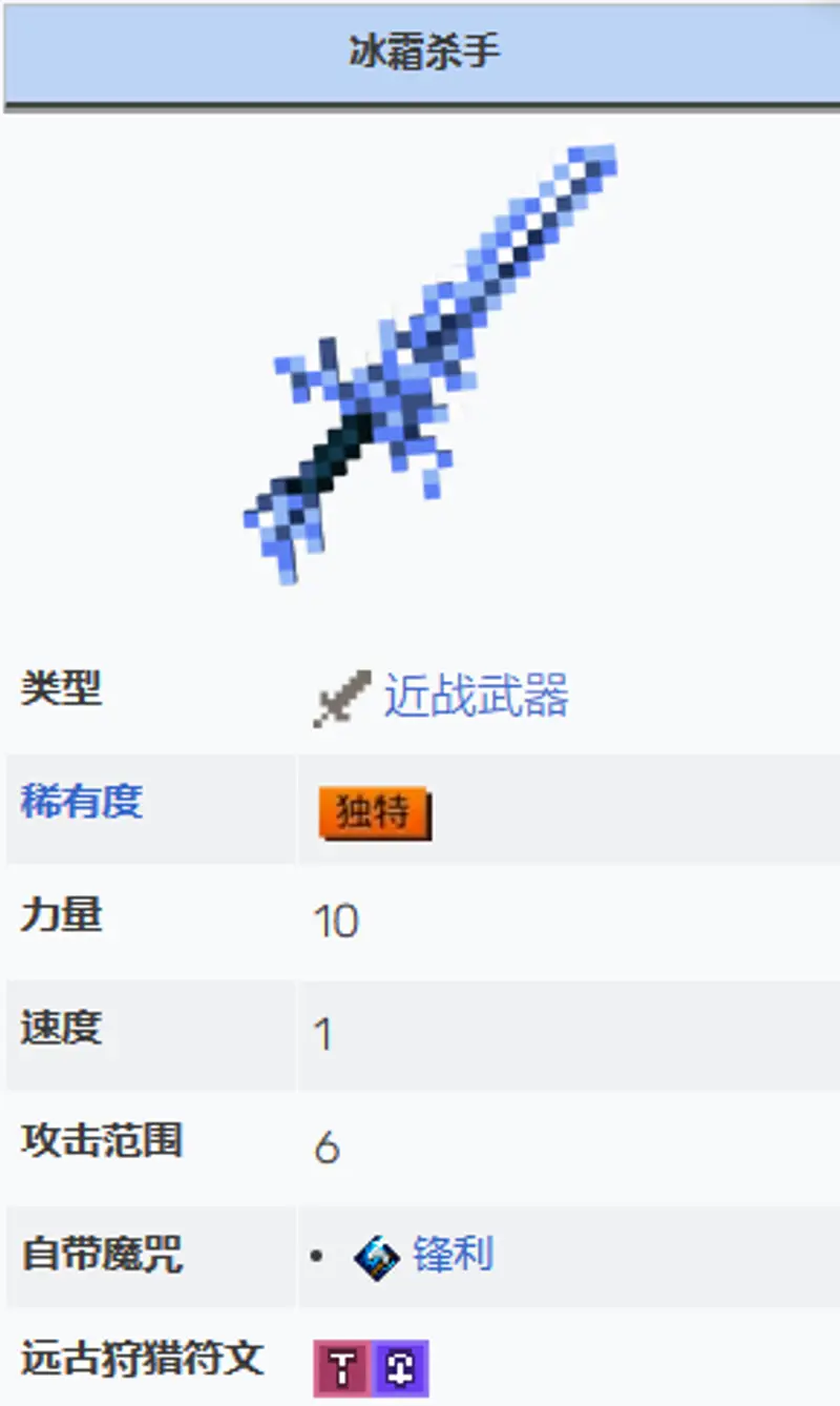 1.冰霜杀手(Frost Slayer,是大剑的特殊活动变种。拥有很高攻击力,极低攻击速度和中等攻击范围。攻击方式与阔剑无异。
