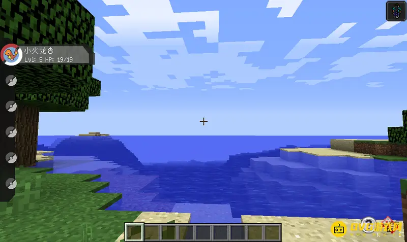 2、接着,进入游戏你会在游戏界面的左边看到你背包上的口袋妖怪。(默认‘R’键扔出,↑或者↓更换要扔出的‘口袋妖怪’,‘O’隐藏;可以在‘选项/控制’中修改按键)
