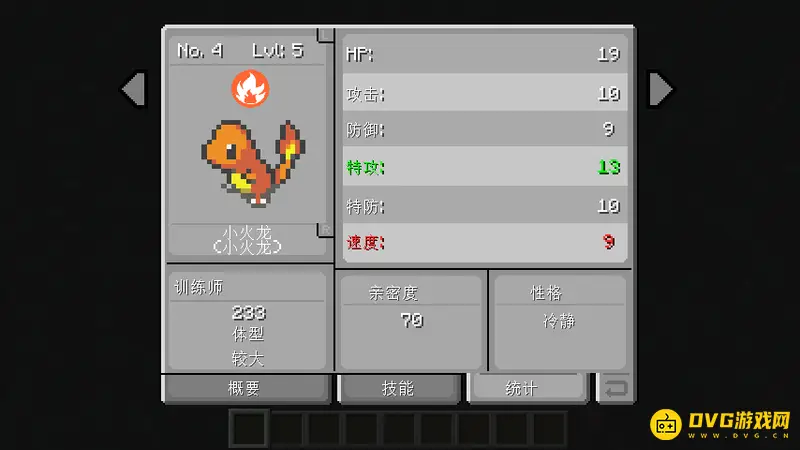 6、统计。不同性格影响不同属性.(绿色的值为较高,红色为较弱)。名称解析Lvl等级训练师拥有者名称体型即放出来大小亲密度通过对战增加。