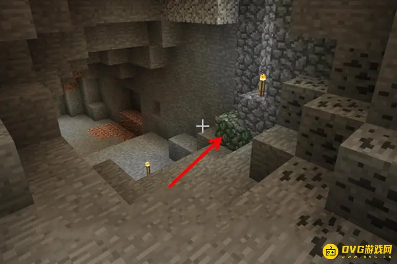 5、还有一种找到刷怪笼的方法是在地下碰到有苔石的地方,就说明附近有刷怪笼。