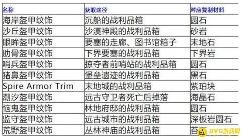 2、不同盔甲纹饰的获取途径是不一样的,可参照下图表格所示。