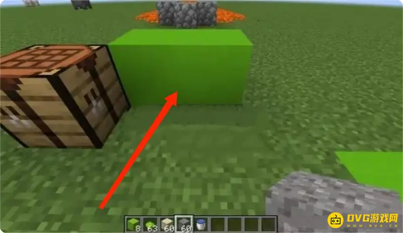 1、首先我们要准备沙砾,沙子与任意颜色染料,然后打开工作台,按照下图摆放就可以了。