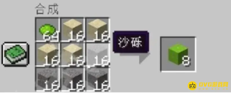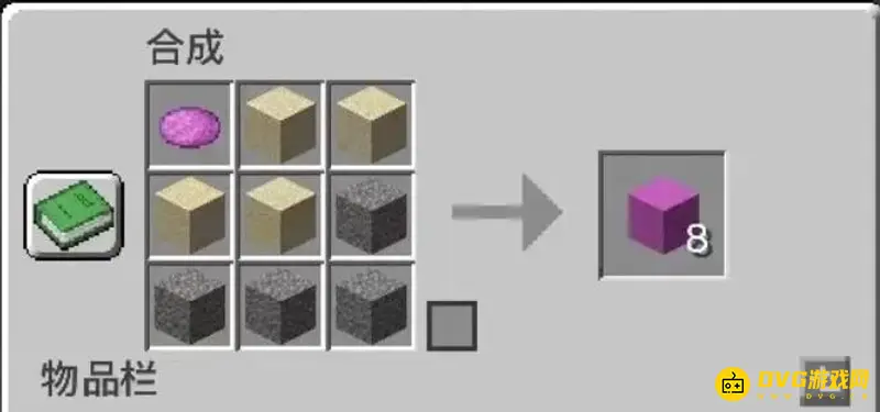 打开你的工作台,将染料放在最顶行的工作区的第一个单元格中。然后,在它旁边放两个沙子。接下来,在中间行的前两个单元格中再放置两个沙子,然后是沙砾。最后,用沙砾填充底行以完成合成。