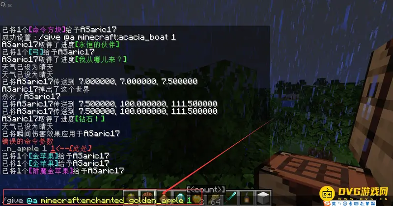 1、调出对话框后在框内输入【/give @a minecraft:enchanted_golden_apple 1】: