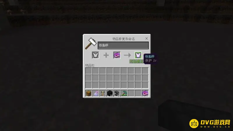一、假设先拿一件铁胸甲附魔上保护4,如下图所示;