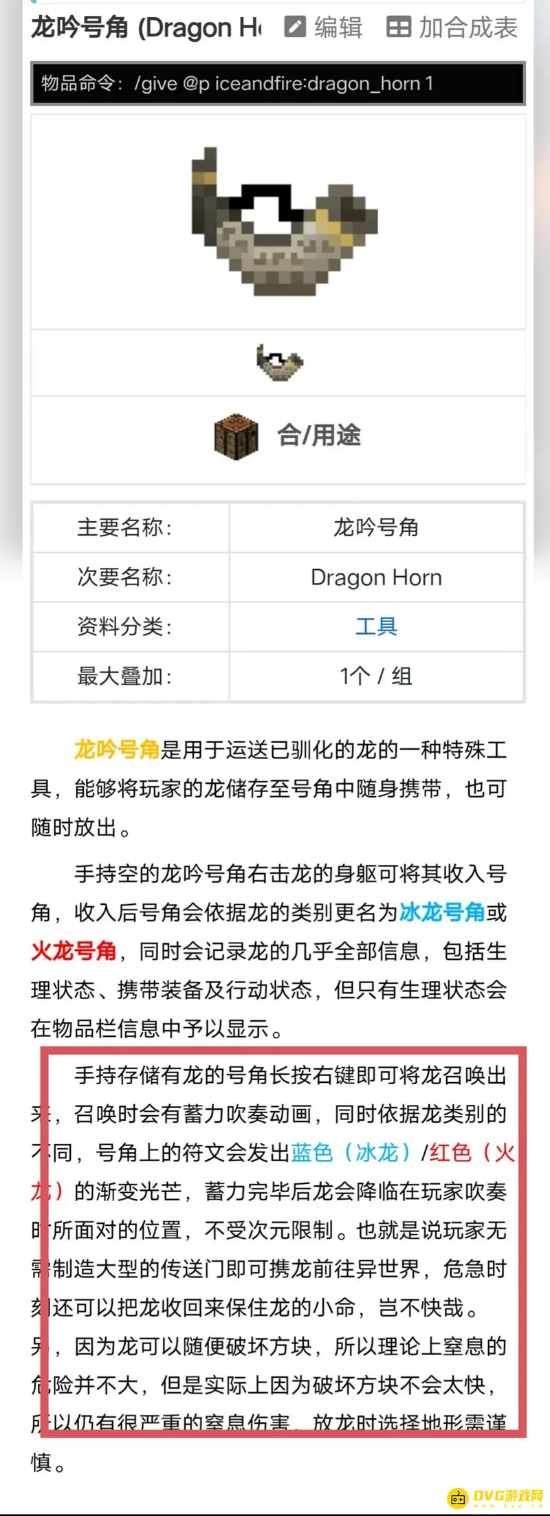 手持存储有龙的号角长按右键即可将龙召唤出来。召唤时会有蓄力吹奏动画,号角上的符文会发出蓝色(冰龙)/红色(火龙)的渐变光芒,蓄力完毕后龙会降临在玩家吹奏时所面对的位置,即可成功使用此工具。