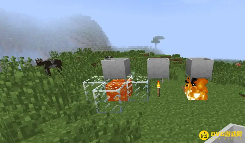 2、之后往下面放置热源,不同的热源有不同的效果,火把:0.1mB/t岩浆:0.2mB/t火:0.3mB/t。