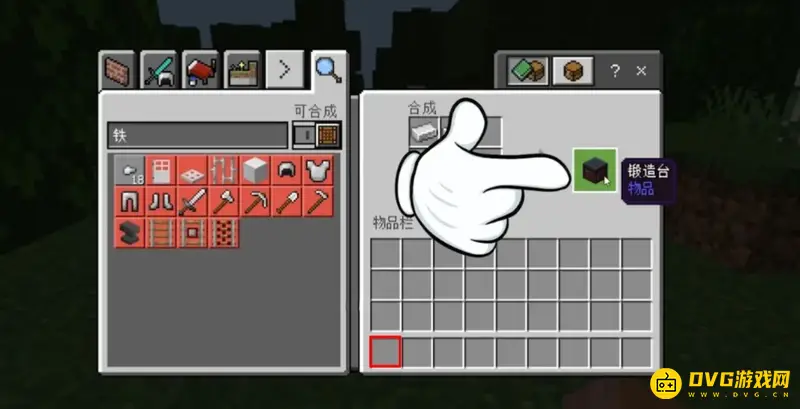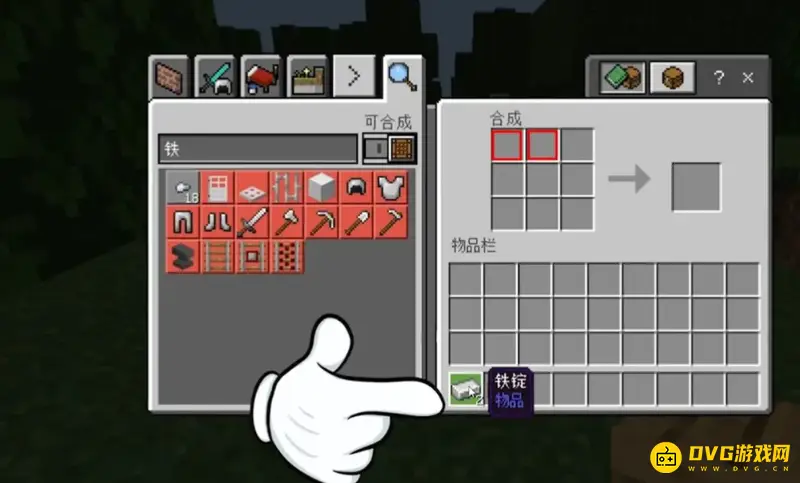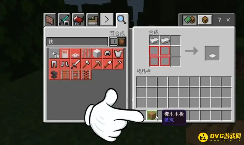 3.接着将铁锭放到合成框中,按照红框的样子摆。