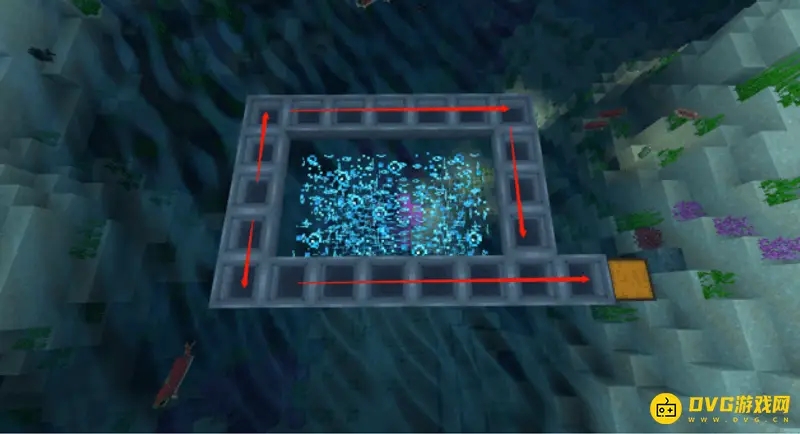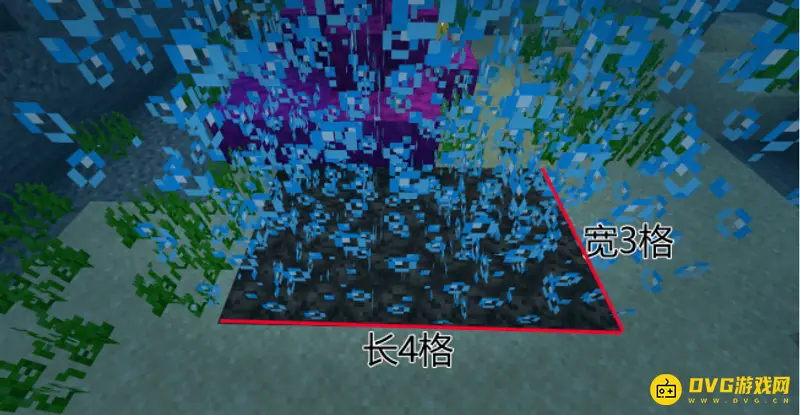 1、首先在较浅的海底铺上宽3格长4格的灵魂沙