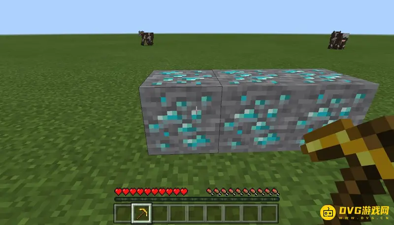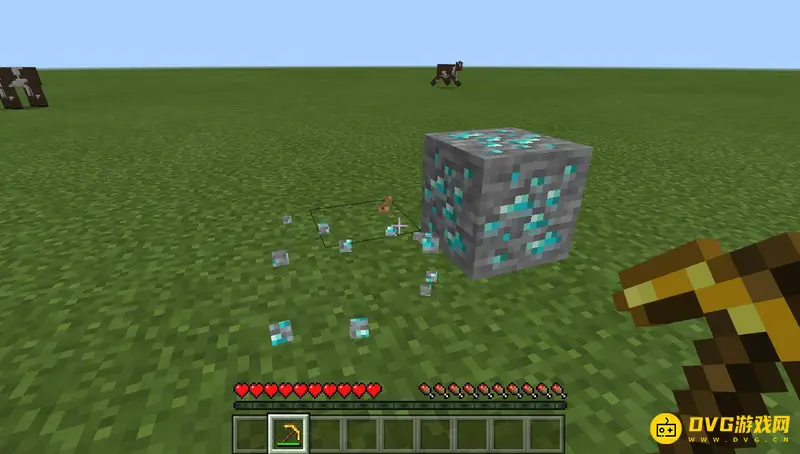2,然后就会发现挖掉钻石矿后没有任何物品掉落,所以金镐头是不可以挖钻石的。