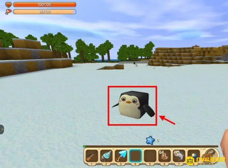 2、找到企鹅。企鹅是冰原地形最主要的生物,如下图所示就是企鹅。