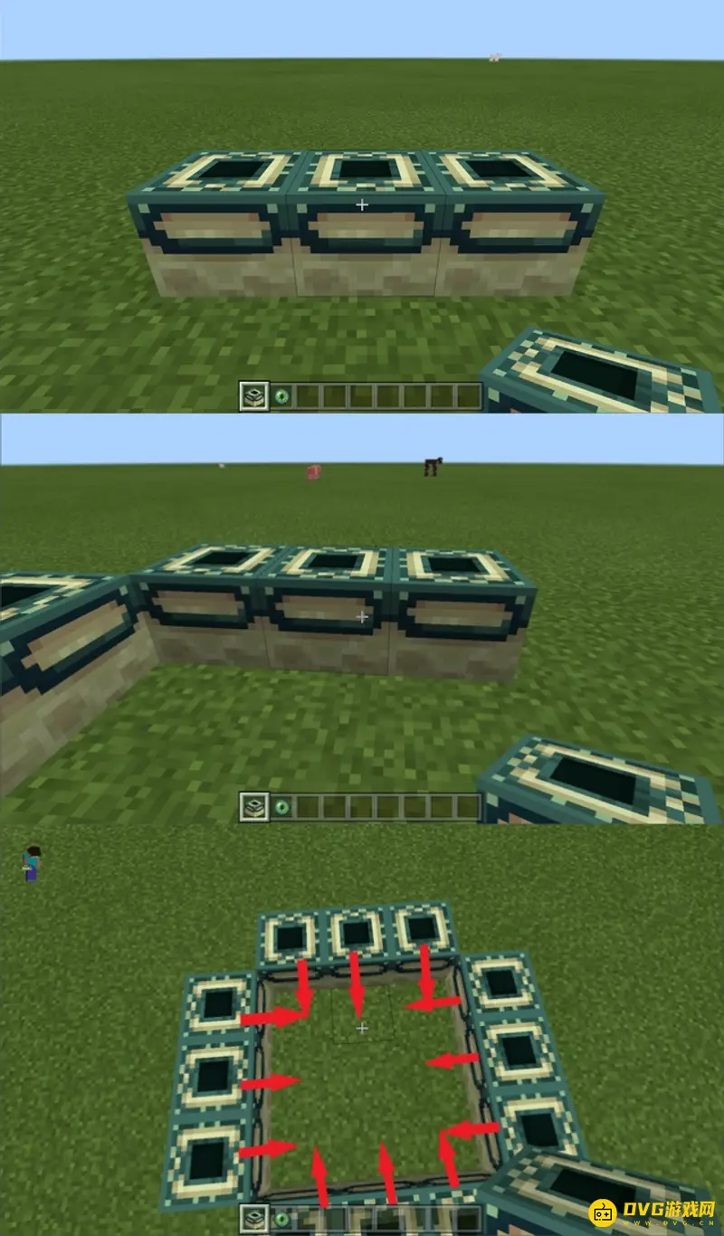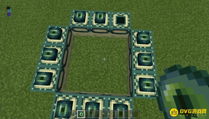 1、用“末地传送门”方块按3x3摆放出末地传送门框架,摆放方块时保证每一个方块的正面是向内侧的。