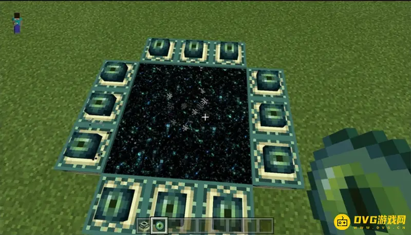 创造模式中可以用末地传送门方块、末影之眼来制作末地传送门