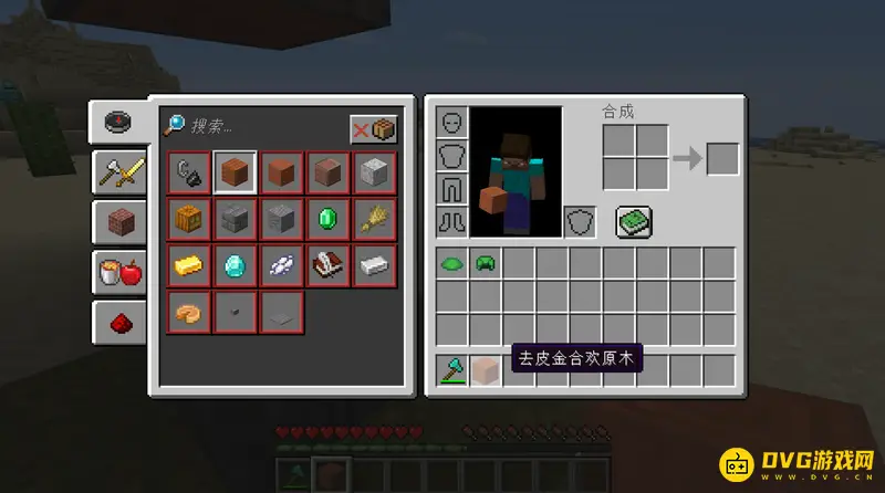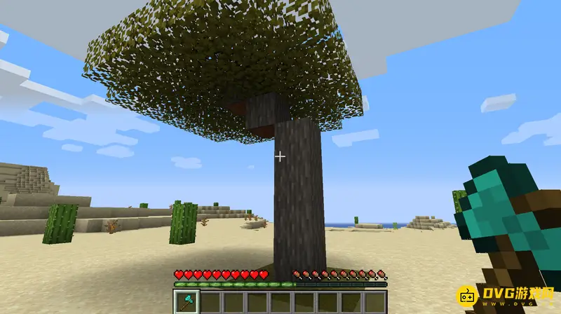 2、玩家需要拿着斧子,对着树干点击鼠标右键,即可对木头去皮。