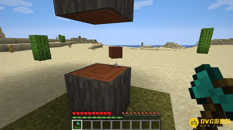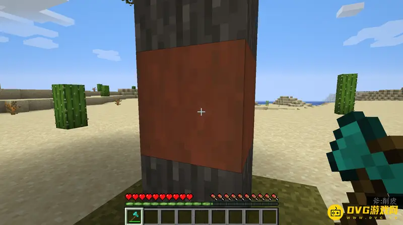 3、在去皮完成之后,对着去皮的木头点击左键将其砍下。