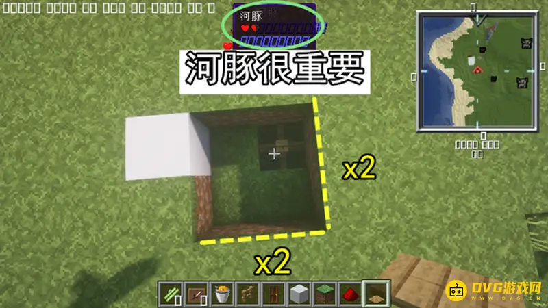 1、搭建该款大门,考验一下各位玩家的mc知识基本功是否扎实。首先往自家大门的任意一侧中挖取2x2的坑,并在离门最远一格再挖深一格。