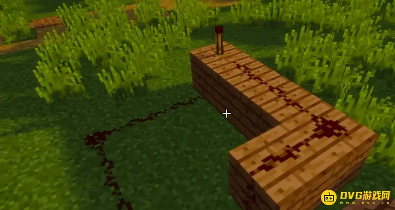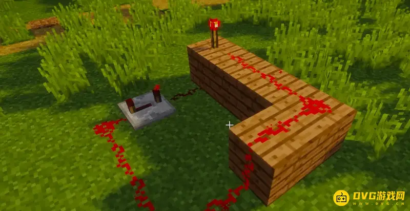 6、重新放置红石火把,即可建成一个脉冲电路。