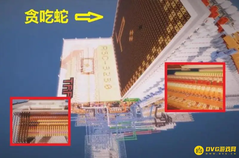这台大家伙虽然叫“挖掘机”,但工作原理与世吞没什么两样,都是TNT在前炸方块,飞,行器组在后除水,来回往复,挖出一个深抵基岩层的巨大空间。