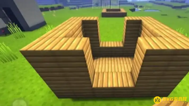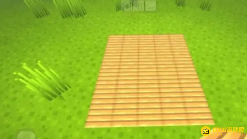 1、首先用木板摆一个下图一样的地基,长六格宽五格。
