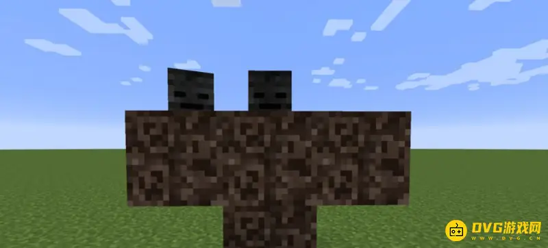 4.收集完成材料就可以制作凋零了很简单的,这里先用铁块代替灵魂沙做个模型。注意凋零骷髅头的摆放。