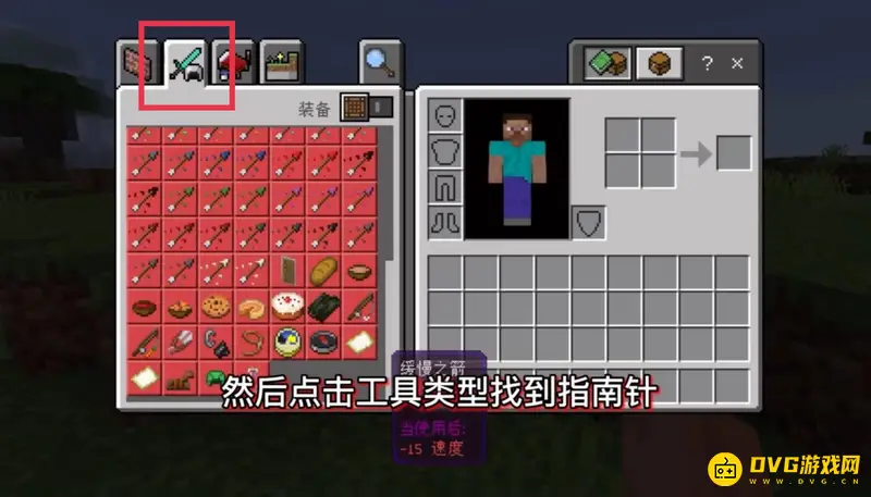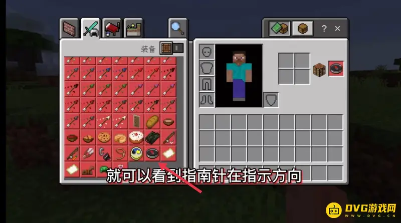 3.观察合成配方中的指南针红色指针指向哪个方向,就从哪个方向一直走,然后再不时的调整方向(因为我的世界的指南针中红针指向的就是家的方向),当然有条件的话可以把这个指南针合成出来,那样会更方便一点,用这个方法就能在床遗失和阻挡的情况下找到家了。