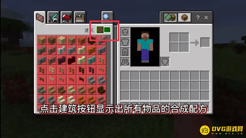 1.首先打开背包,然后点击建筑按钮显示出所有物品的合成配方。