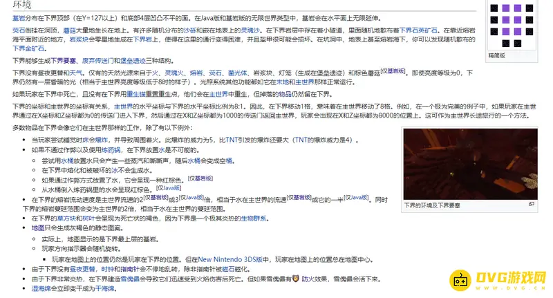 这些遗迹分别是下界要塞、废弃传送门和堡垒遗迹等。同时玩家也需要注意,地狱(下界)的很多独特生物,其中的大多数生物(僵尸猪灵、恶魂、岩浆怪、烈焰人、凋灵骷髅、炽足兽)都是完全防火。