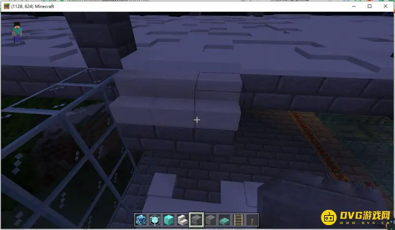 5.半砖用的青石,四个,但是因为半砖侧面楼梯不能放置成向下的,所以靠外先用石砖方块,然后打掉换了就可以了。