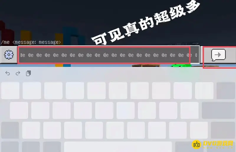 2.@e输入的越多越好,输入的越多崩房的概率也就越大,如下图所示要输入很多@e,然后按一下发送按钮,运行这个指令,房间就会直接卡崩掉,这个指令只能在网易版我的世界的房间使用。