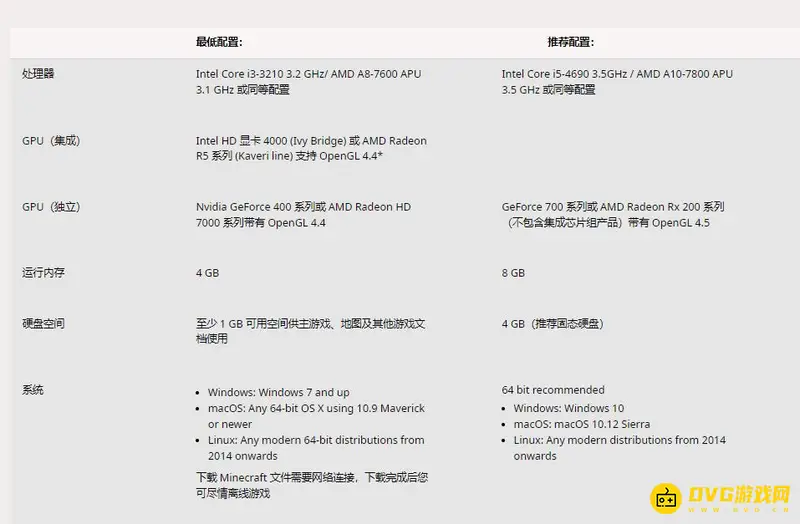 2,然后就可以在下方发现我的世界配置要求了,就可以发现我的世界配置并不高,一般电脑都是可以运行的。