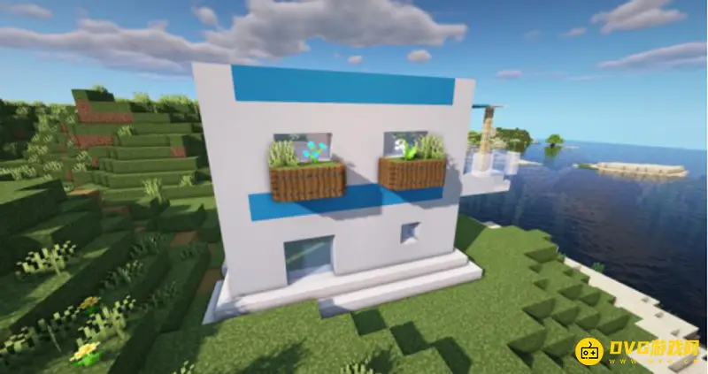13、侧面的墙壁则可以使用草方块、云杉木活板门以及花和草进行装饰,然后我们就可以进入内饰部分啦。