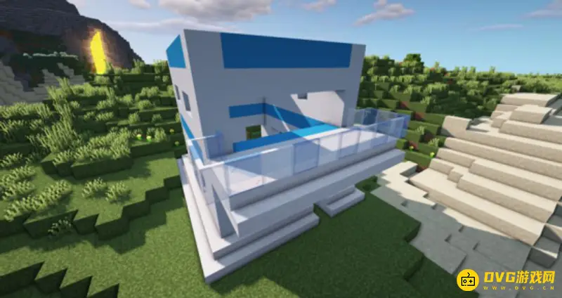 6、正面,分别使用白色混凝土和淡蓝色混凝土搭出结构。