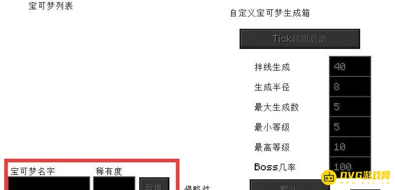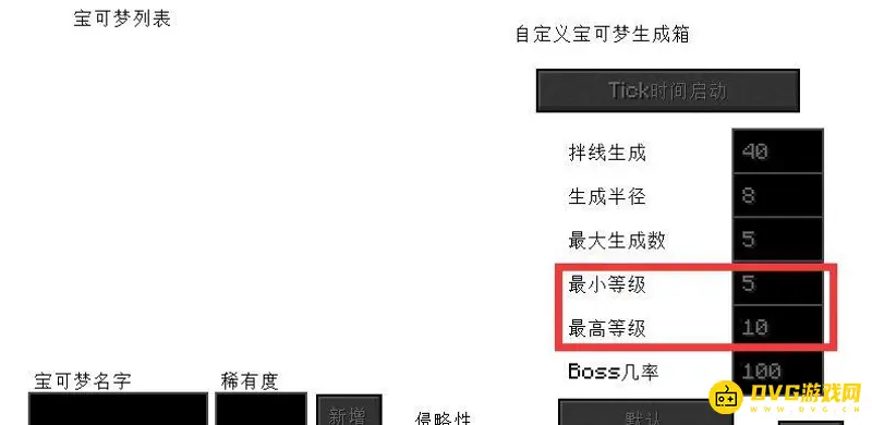 4、右输入框输入宝可梦稀有度 数值越小不越容易生成。