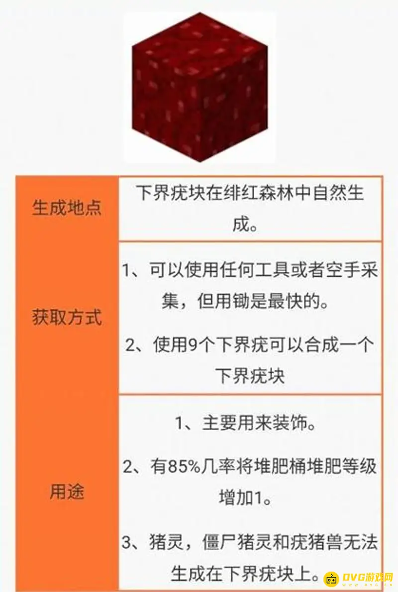 一、下界疣块在绯红森林中自然生成。可以使用任何工具或者空手采集,但用锄是最快的。使用9个下界疣可以合成一个下界疣块。