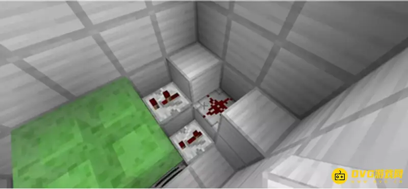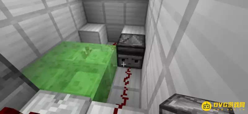 6、主体电路基本搞定,在粘液块上放置想要的方块就可以了,放个拉杆看看效果。