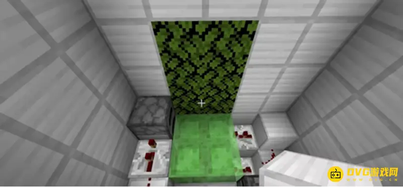 5、除了电路外,将所有可能与粘液块接触的方块替换,换为不受粘液块影响的方块。如树叶、黑曜石、熔炉、投掷器等,都是不受粘液块影响的,这里选择了较为便宜美观的树叶。