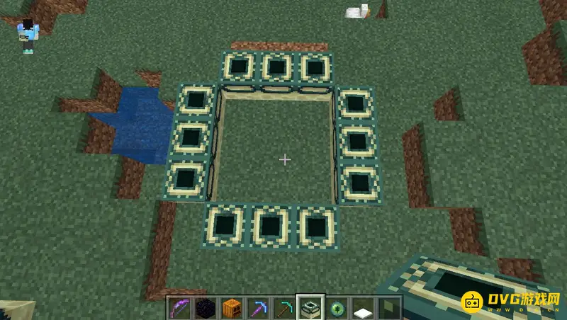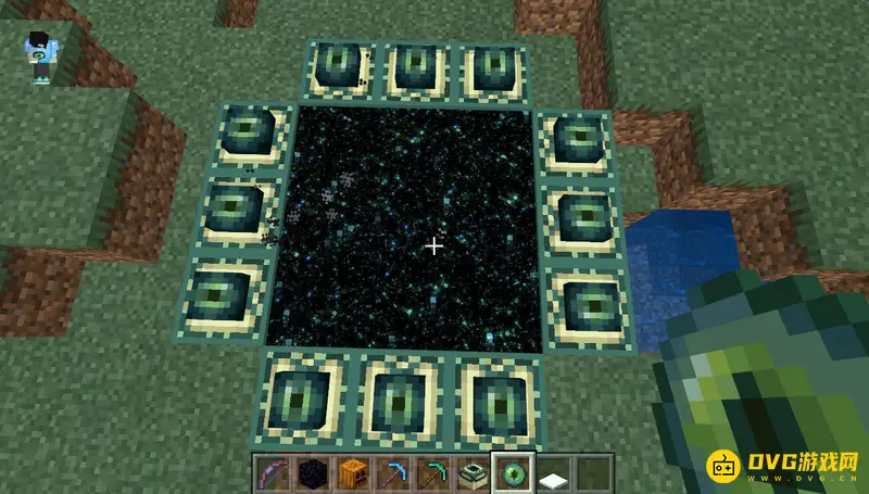 把末地传送门围着3X3建造,然后放上末影之眼即可。