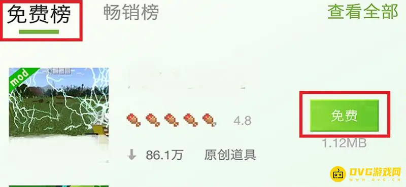 5.但是呢,很多优秀的模组都是收费的,那么我们不想花钱该怎么办呢?我们可以查看免费榜,这下面也有不少免费并且优秀的模组哦!我们选择自己喜欢,感兴趣的模组,点击绿色按钮进行下载