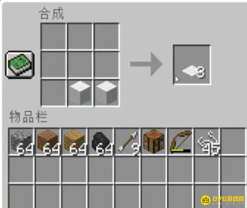 先用四根线合成一个白色羊毛,只能用4根,放多了什么都没办法合成出来。合成两次,出两个白色羊毛就行。