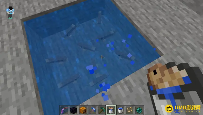 拿着装着鱼的桶右键点击水就可以把鱼放进水里了。