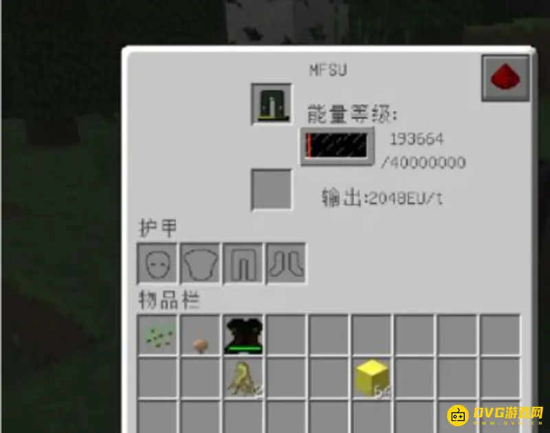 我的世界工业时代中的纳米套装需要有电力才可以使用,可以在MFE或MFE以上的储电设备里面充电。MFE充电座是中型固定式存电设备,可用能量水晶比它低级的存电物品充电,同时可为电力工具充电。